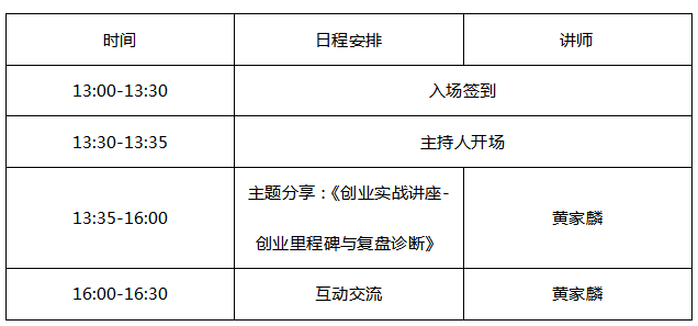活动主题:《创业实战讲座-创业里程碑与复盘诊断》